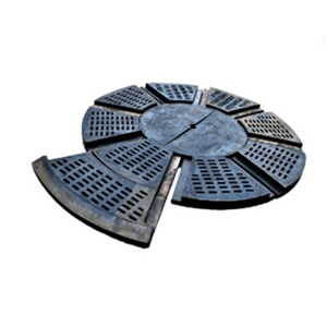 溢流球磨機(jī)端襯板設(shè)計為兩段分割的設(shè)計結(jié)構(gòu)。受球磨機(jī)材料高度的影響,球磨機(jī)端襯板的強磨損帶一般位于內(nèi)圈端襯板的中下部和外圈端襯板。內(nèi)圈端襯板的上部基本上沒有磨損。兩段分割的設(shè)計結(jié)構(gòu)迫使內(nèi)圈端襯板在下部磨損后報廢更換,導(dǎo)致襯板使用成本增加。當(dāng)球磨機(jī)端襯板采用三段分割的設(shè)計結(jié)構(gòu)時,只需根據(jù)需要更換內(nèi)圈襯板的中下部和外圈端襯板襯板的上部可以長時間使用,無需更換。